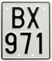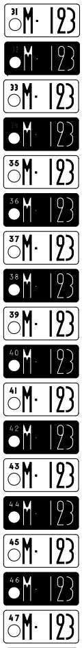 Samanlainen kilpi takana sekä vuosittain vaihtuva verokilpi (n. 72x84 mm, Vuosiluku numerot K 30 mm L 16 mm, viivaleveys 6 mm, tunnusosa numerot K 20 mm, L 11 mm, viivaleveys 4 mm).