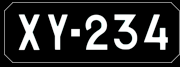1972 alkaen (123x397 mm) heijastavapohjaiset kolmikirjaimiset kolmella numerolla ja välimerkillä.
