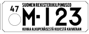 18.5.1922 säädettiin Valtioneuvoston päätös automobiilien ja moottoripyörien rekisteröimisestä ja katsastuksesta (117/1922), ja tässä päätöksessä ei ollut merkkien muodoille annettu minkäänlaista määritelmää, ainoastaan kokotietoja.
