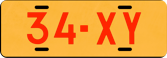 2. 1960 alkaen (122x343 mm) muotoa 12-AB tai 123-AB punaisin merkein oranssilla pohjalla pelkkien hihnakiinnitysreikien kanssa ja punaisella reunaviivalla. Alumiinikilpi. 1968 kilpiin liimattiin vakuutuksesta kertova tarkastus tarra.